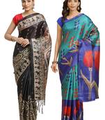 Multicolor Printed Art Silk Saree With Blouse