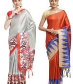Multicolor Printed Art Silk Saree With Blouse