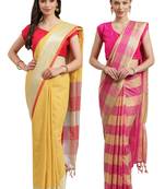 • Product Id : 3410236 • Package Details : 2 Saree/2 Blouse • Type : Cotton Silk Sarees • Work : Woven • Type : Zari Woven • Width : 44 Inches • Length : 5.5 Metres Stitching [+]