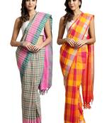 Multicolor checked saree, has a zari and/or woven border. Comes with