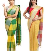 • Product Id : 3410529 • Package Details : 2 Saree/2 Blouse • Type : Cotton Silk Sarees • Work : Woven • Type : Zari Woven • Width : 44 Inches • Length : 5.5 Metres Stitching [+]
