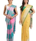 • Product Id : 3410552 • Package Details : 2 Saree/2 Blouse • Type : Cotton Silk Sarees • Work : Woven • Type : Zari Woven • Width : 44 Inches • Length : 5.5 Metres Stitching [+]
