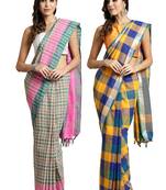 Multicolor checked saree, has a zari and/or woven border. Comes with
