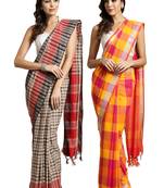Multicolor checked saree, has a zari and/or woven border. Comes with