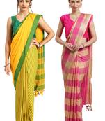 • Product Id : 3409898 • Package Details : 2 Saree/2 Blouse • Type : Cotton Silk Sarees • Work : Woven • Type : Zari Woven • Width : 44 Inches • Length : 5.5 Metres Stitching [+]