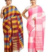 Multicolor checked saree, has a zari and/or woven border. Comes with