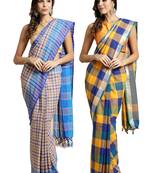 Multicolor checked saree, has a zari and/or woven border. Comes with