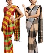 Multicolor checked saree, has a zari and/or woven border. Comes with
