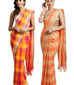 Multicolor checked saree, has a zari and/or woven border. Comes with