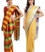 • Product Id : 3410519 • Package Details : 2 Saree/2 Blouse • Type : Cotton Silk Sarees • Work : Woven • Type : Zari Woven • Width : 44 Inches • Length : 5.5 Metres Stitching [+]