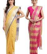 • Product Id : 3410239 • Package Details : 2 Saree/2 Blouse • Type : Cotton Silk Sarees • Work : Woven • Type : Zari Woven • Width : 44 Inches • Length : 5.5 Metres Stitching [+]