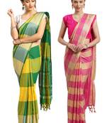 • Product Id : 3409855 • Package Details : 2 Saree/2 Blouse • Type : Cotton Silk Sarees • Work : Woven • Type : Zari Woven • Width : 44 Inches • Length : 5.5 Metres Stitching [+]