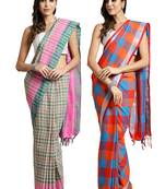 Multicolor checked saree, has a zari and/or woven border. Comes with