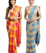 Multicolor checked saree, has a zari and/or woven border. Comes with