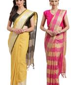 • Product Id : 3410240 • Package Details : 2 Saree/2 Blouse • Type : Cotton Silk Sarees • Work : Woven • Type : Zari Woven • Width : 44 Inches • Length : 5.5 Metres Stitching [+]
