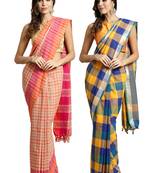 Multicolor checked saree, has a zari and/or woven border. Comes with