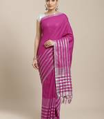 Purple Woven Blended Cotton Saree With Blouse