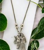 9blings Silver Plated Radha Krishna Pendant Necklace