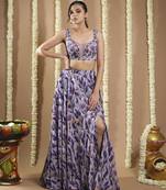 • Product Id : 4556970 • Package Details : 1 Lehenga / 1 Bustier • Type : Fusion Wear • Occasion : Party Wear • Fabric : Crepe • Work : Printed • Type : Floral Print • Sleeve : Sleeveless • Color : Violet • Stitching : Stitched • Length : Asymmetrical • Length : Asymmetrical Payments [+]