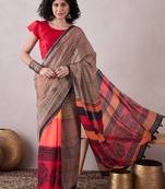 • Border : Designer Border • Fabric Of : Linen • Color : Brown • Color : Brown Blouse Details