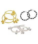 AkinosKIDS Hand Crafted Brass Alloy bead and ghungroo Nazariya Bangles for newborn Toddler Set of 3 nazriya - Gold and Silver Plated