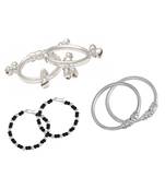 AkinosKIDS Brass Alloy Hand Crafted beads and ghungroo Nazariya Bangle for newborn Toddler Set of 3 Nazriya - Silver plated