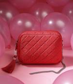 Amour Valentine Red Polyester Diamond Quilted Sling Bag