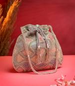 Dangle Silver & Pastel Multi Vermicular Embellished Faux Silk Potli