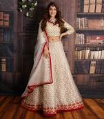 • Style : Circular Lehenga • Fabric : Brocade • Work : Embroidered • Color : Ivory Blouse Details