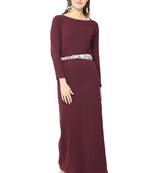 Maroon Plain Blended Cotton Long Dresses