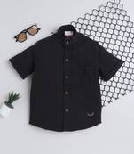 Black Cotton Double Cloth Designer Half Sleeves Mandarin Collar Shirt For Girls And Boys