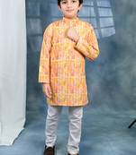 Yellow Crochet Jaipurian Printed Kurta And Pyjama Set For Boys