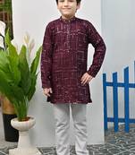 Boys Rayon Mirror Work Chikankari Embroidered Kurta Pyjama Set Wine