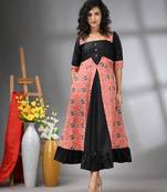 Indulge in elegance with the orange and black ajrak print modal ethnic dress, a true showstopper for any special occasion. The square neckline beautifully frames the neckline, while the delicate half sleeves add a touch of femininity and convenient pocket offers functionality and style. Embrace the trend with the ruffled hemline that flows gracefully, creating a flared silhouette that is both flattering and chic. Crafted from luxurious modal fabric, this dress exudes sophistication and style, making it a must-have addition to your wardrobe. Elevate your fashion game and command attention in this stunning piece that embodies modern glamour and timeless allure.