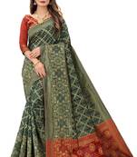 Green Woven Banarasi Cotton Silk Saree With Blouse
