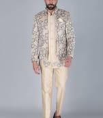 • Product Id : 4552249 • Package Details : 1 Jacket /1 Kurta/1 Trouser • Type : Indo Western For Men • Occasion : Ceremonial • Fabric : Velvet • Work : Embroidered • Type : Resham Embroidery • Bottom Style : Trouser • Sleeve : Full Sleeve • Neck Style : Chinese Collar Kameez • Color : White • Bottom Color : White • Top Color : White • Top Fabric : Velvet • Bottom Fabric : Silk Blend • Stitching : Stitched Payments [+]