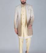 Pale Yellow Thread And Sequins Embroidered Indowestern Set
