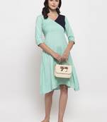 Category Of Article is Dresses; Sub Category is Indo Western; Color of Top is Blue; Color of Bottom is None; Fabric used in Top is Cotton; Fabric used in Bottom is None; Sleeves Type is Regular Sleeves; Sleeves Length is Short Sleeves; Dress Length is Knee Length; Top Style is A Line; Bottom Style is None; Lining Used in Top No; Lining Used in Bottom None; Closure Top is Slip On; Closure Bottom is None; No. Of Pocket is 0; Fit is Slim Fit; USP is Drape Work