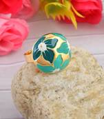 Brass Gold And Firoza Mural Finger Ring For Women Free Size