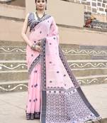 Elora Handloom Cotton Butti Weaving Saree For Women (Light Pink)