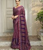 Violet Poly Viscose Georgette Geometric Pattern Banarasi Saree