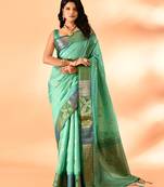 Elora Pure Cotton Silk Banarasi Weaving Saree (Sea Green)