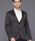 Men's Dark Grey Single Breasted Slim Fit Blazer With Blue And Black Two Tone Checks