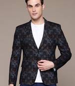 Men's Knitted Blue Single Breasted Slim Fit Block Print Blazer
