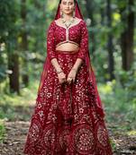 • Style : A Line Lehenga • Fabric : Net • Work : Embroidered • Color : Maroon Blouse Details