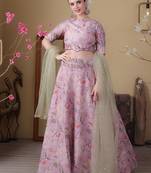 Ethnovog Ready To Wear Mauve Digital Printed Boat Neck Lehenga