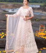 • Fabric : Net • Work : Plain • Color : Pink • Length : 2.5 Lehenga Details