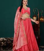 Ethnovog Ready To Wear Pink Chanderi Lehenga With Embroidered Dupatta