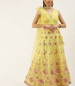 • Fabric : Organza • Work : Embroidered • Color : Yellow • Length : 2.5 Lehenga Details