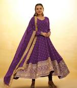 Fusionic Purple Dori Embroidery Anarkali Salwar Kameez With Dupatta Stitched